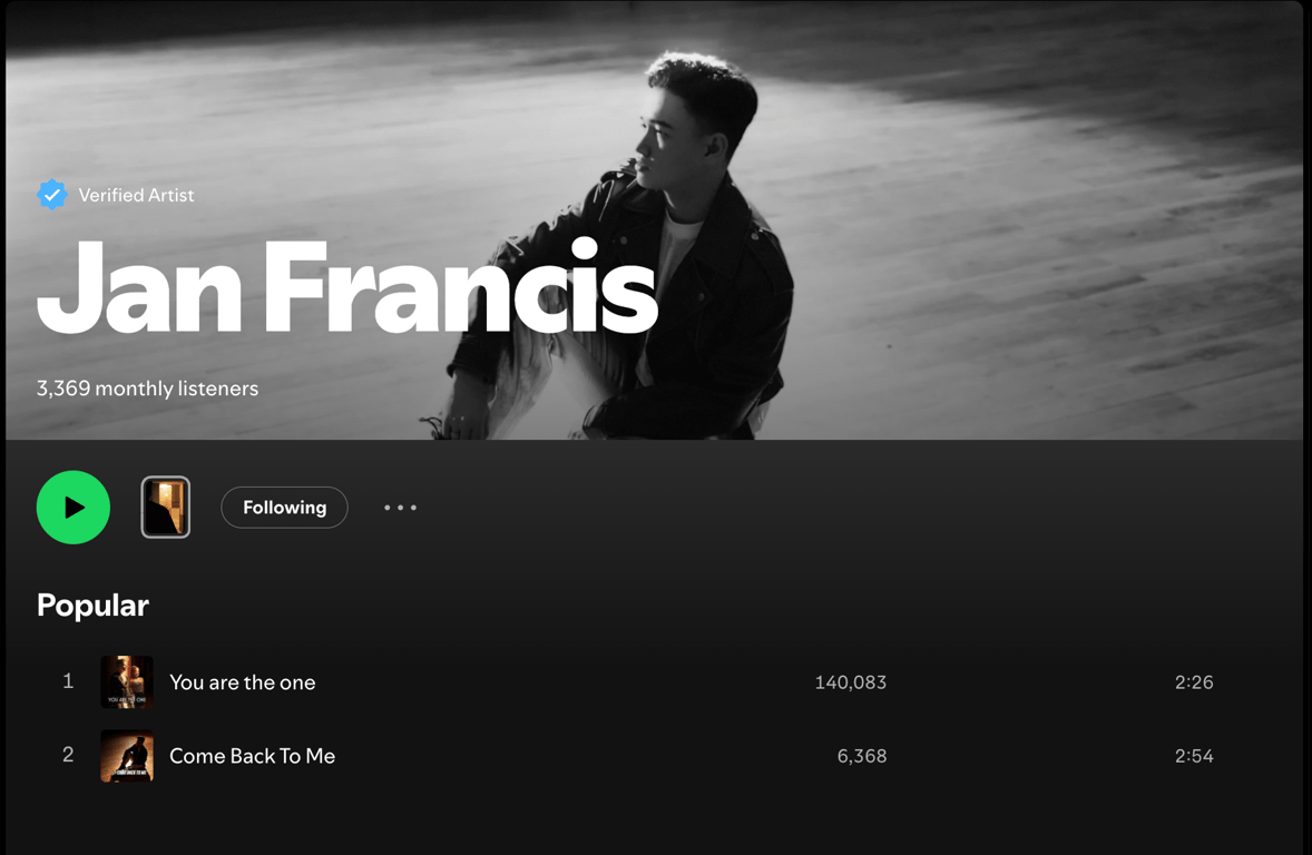 The rapid rise of both "You Are The One" and "Come Back To Me" represents an incredible feat for a newcomer in the competitive OPM scene. Achieving significant streaming numbers and landing on prominent Spotify playlists within such a short period is a testament to Jan Francis's talent and hard work.