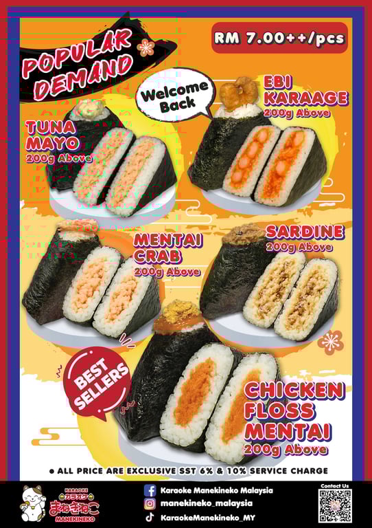 Karaoke Manekineko Malaysia is turning up the flavor with the much-awaited return of our best-selling Japanese-style onigiri—now available once again across all outlets nationwide!