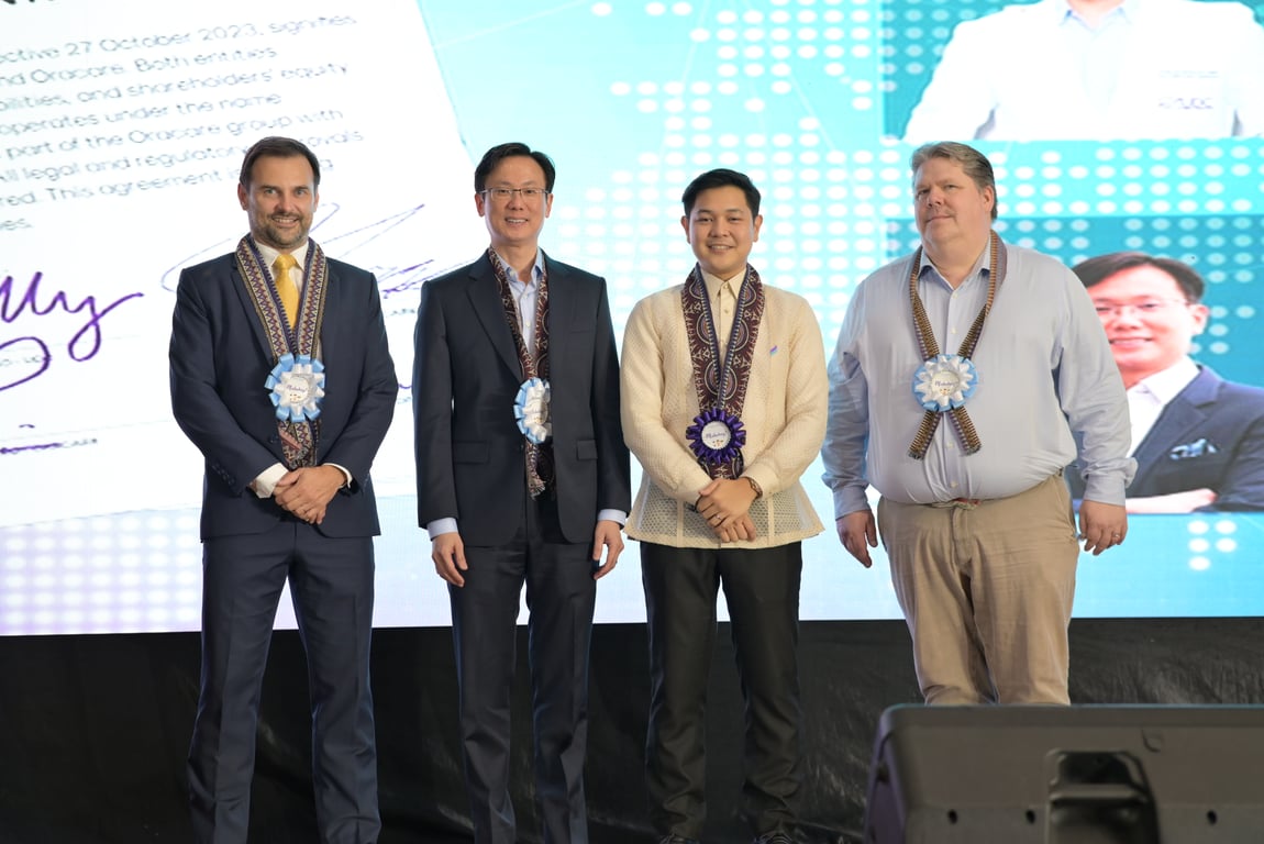 Celebration event to welcome UY Dental Clinic (UDC) into Oracare Group on 27 October 2023 in Manila, the Philippines. From left: Andy Cropp, Co-founder and Chief Financial Officer – Oracare Group; Leon Luai, Co-founder and CEO – Oracare Group; Dr Charlston Uy, Founder and CEO – UDC; Nick Watkins, Non-executive Chairman – Oracare Group